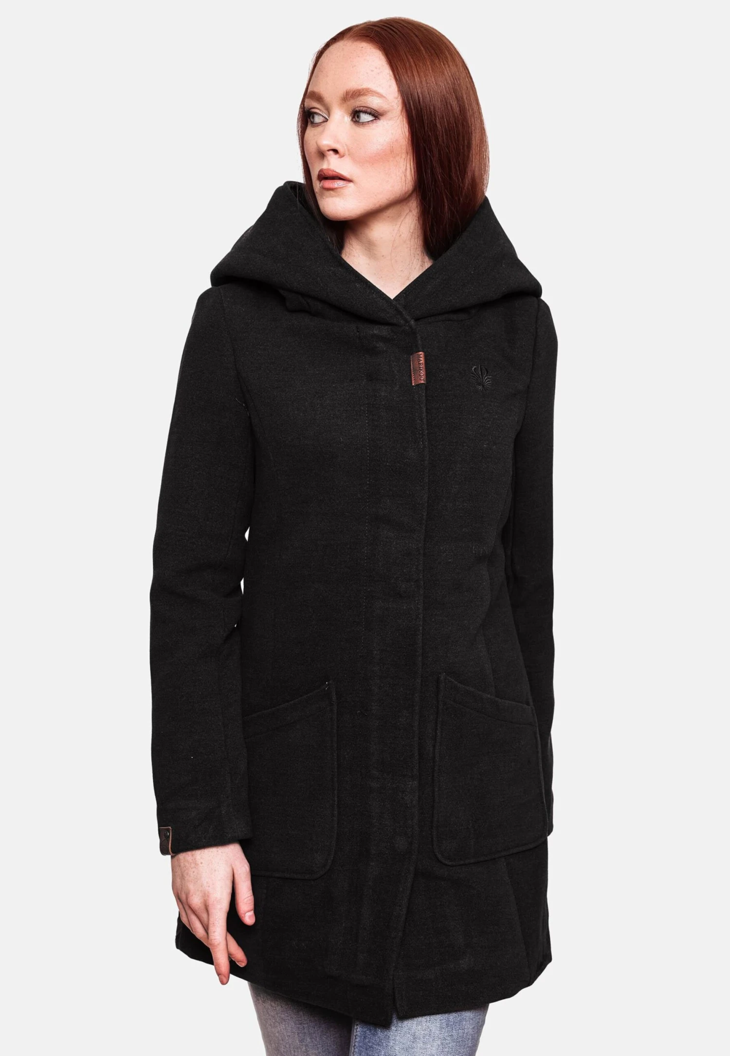 Couleur unieBoutonnière avec boutons pressionCoupe cintréeFermeture éclair masquéePoche intérieureBroderie de l’étiquetteToucher soyeuxDoux au toucherDoublure chaudeBouton pression