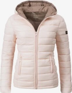 Couleur unieVeste matelasséeFermeture éclairCapuche avec col montantCoupe cintréePoches latérales avec fermeture éclairScintillantEtiquette patch / étiquette flagPiqûres de finitionsCoutures ton sur tonétancheLégèrement doubléFermeture à glissière